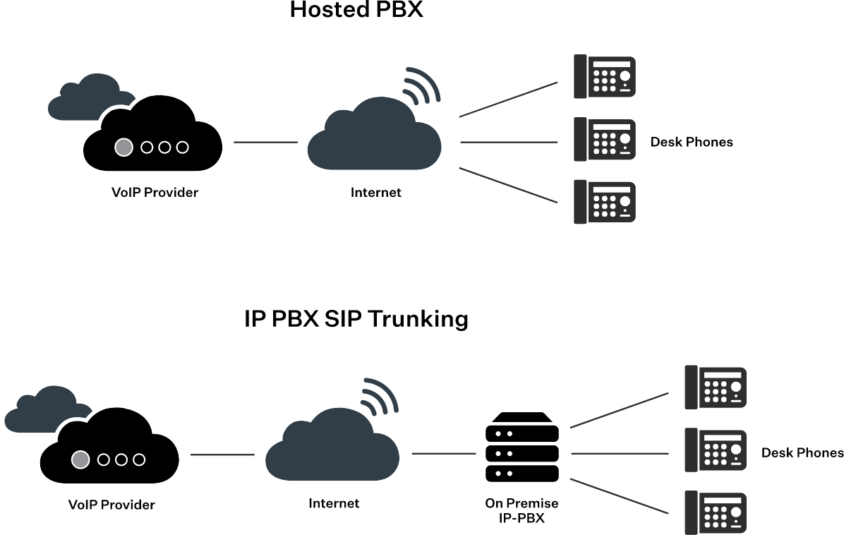 Businesses with an existing on-premise phone system can also take advantage of internet-based communication through SIP trunking, a service that virtually connects your traditional phone system to the internet and makes unlimited, VoIP communication possible.