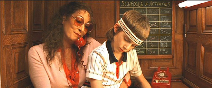 Etheline Tenenbaum is on the phone with son in her lap